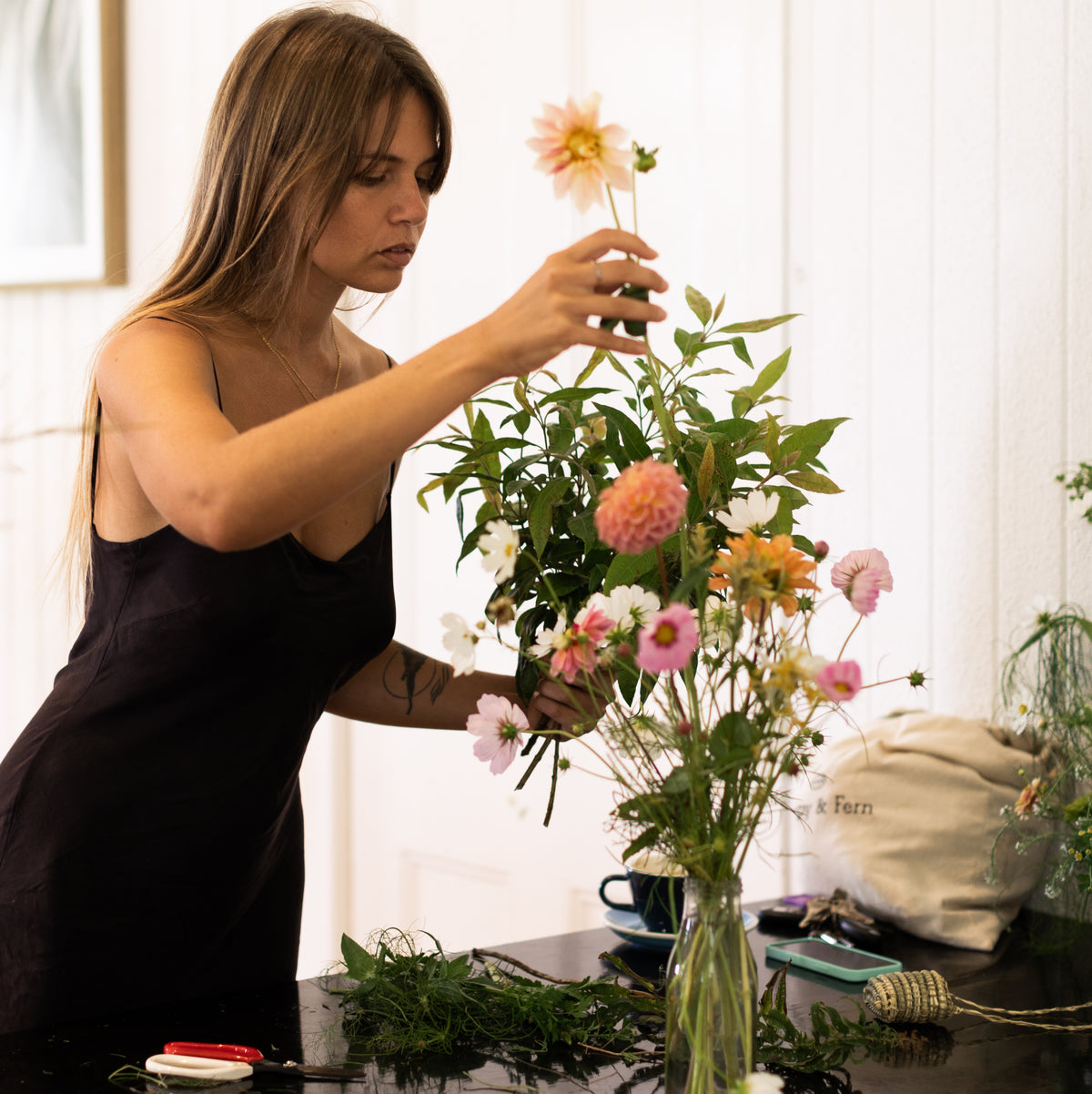 Flower School Byron Bay is our immersive, hands-on learning space where floristry meets nature, sustainability, and creativity. It’s where you come to: