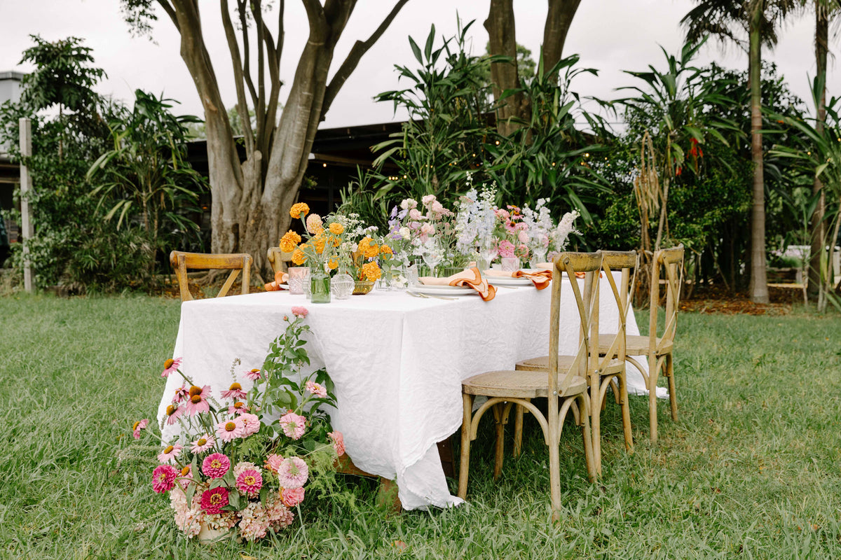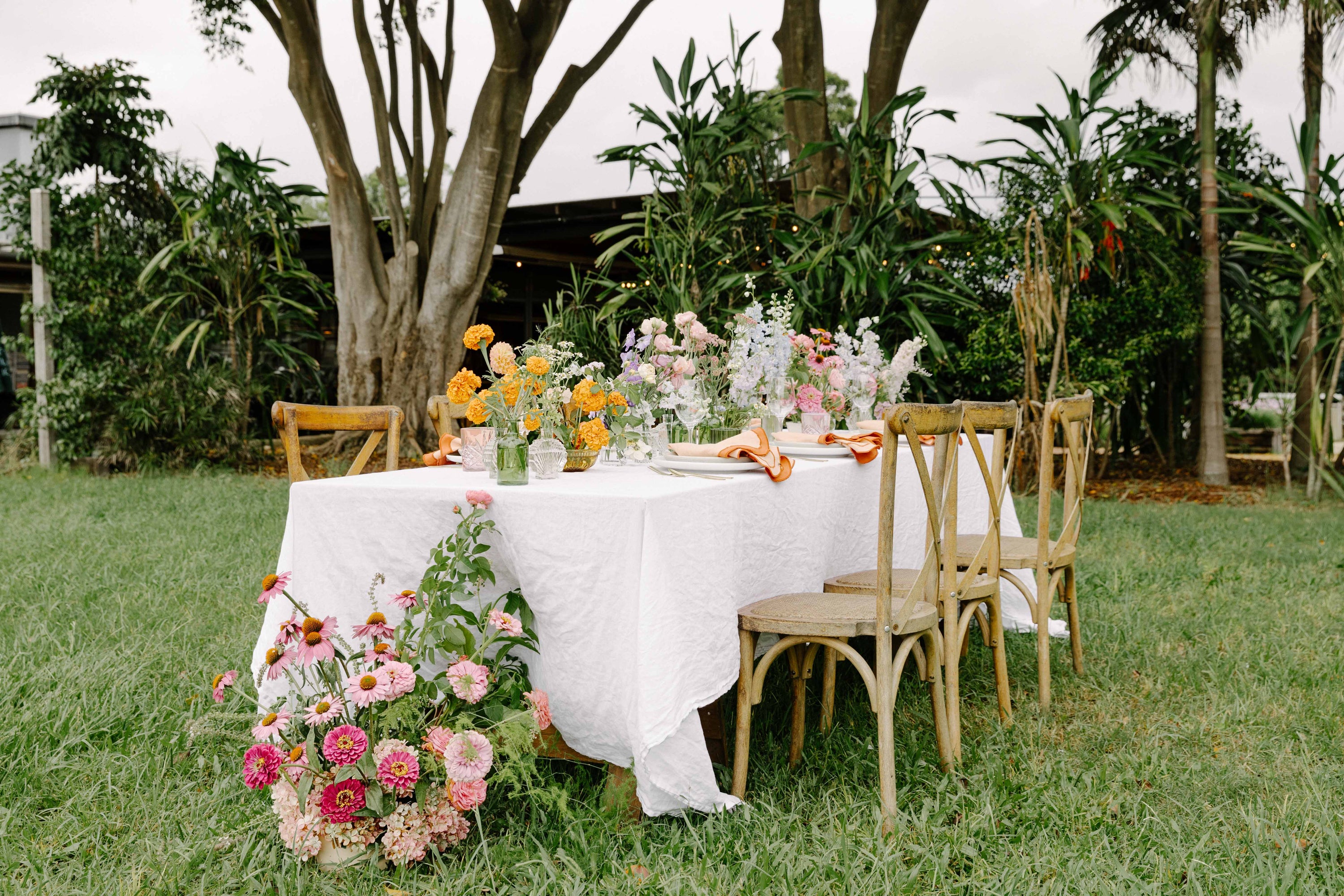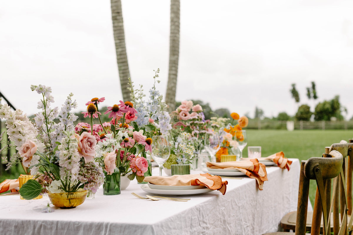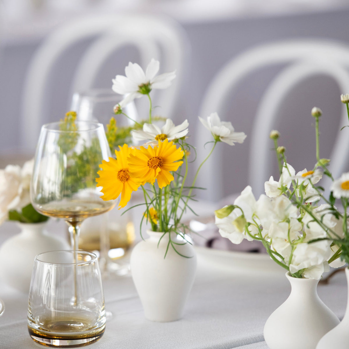 - Reception florals — Table arrangements, hanging installations, and bar flowers can be as simple or abundant as you like.
